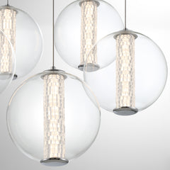 A fascinating globe fixture, Atomo offers a unique and proprietary LED, lamping called crystal pitch. Faceted crystal gears surround the LED light, source to emit a spectacular refraction within the glass globe. **PLEASE note this product does not include shipping, please call 949-831-7600 for an accurate freight quote** Open Box