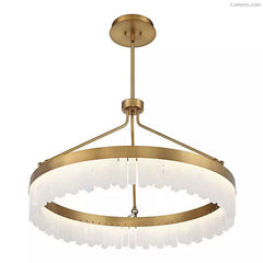 Clean-cut outlines marry with an efficient ring of illumination in the handsome Landon LED Pendant from Savoy House. The pedant makes a dramatic first impression. Its precise yet spacious elements resonate in the open modern space. The eyes follow the dynamic trajectory of the metal rod suspension. A pristine ring frame hangs below, concealing the LED array together with calcite...