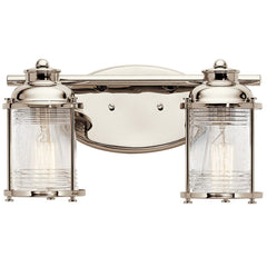 Ashland Bay offers a nautical feel with this 2-light vanity. For a vintage inspired look, polished nickel accentuates the beautiful clear seeded glass. To complete the look, optional vintage-style bulbs shine brightly through. For an added ambiance, nothing compares to Ashland Bay. **PLEASE note this product does not include shipping, please call 949-831-7600 for an accurate freight quote** Open Box