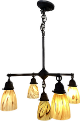 Simplicity SCH-4/1 C138 Bronze Patina & Mocha Swirl Glass 23”Diameter x 24”High x 57” OAH 5 Light Medium Base **PLEASE note this product does not include shipping, please call 949-831-7600 for an accurate freight quote** Open Box