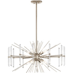 Kichler 44276PN, Eris 8 Light 30 inch Polished Nickel Chandelier Round Pendant Ceiling Light Width: 30.00 in. Height: 16.75 in. Max Height: 49.00 in. Weight: 9.50 lb. **PLEASE note this product does not include shipping, please call 949-831-7600 for an accurate freight quote** OPEN BOX