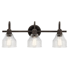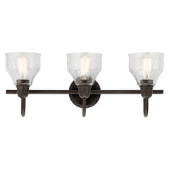 Kichler 45973OZ Avery 3 Light Bath Bar Olde Bronze & Seeded Glass Create a masterpiece with this 3 light bath light from the Avery collection. In a Olde Bronze finish with Clear Seeded glass. Install Up or Down Width: 24.00 in. Height: 9.25 in. Primary Bulb(s): 3 x 75watts Medium *PLEASE note this product does not include shipping, please...
