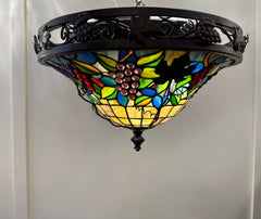 3 light med base 40 watt max 17”dia x 9.5”h Colored acrylic & Dark bronze **PLEASE note this product does not include shipping, please call 949-831-7600 for an accurate freight quote** Open Box