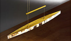 Holtkötter: Acrylic Low-voltage Pendant 5907/7 Brushed Brass   Acrylic Low-voltage Pendant No. 5907/7 The height of this low-voltage pendant is easily adjusted with the hand-polished counter-weight. Seven frosted 20-Watt Halostar bulbs by Osram are diffused through an acrylic reflector. This fixture utilizes an electronic, line-voltage (120 V input) to low-voltage (12 V output) transformer by Lightech. If you are planning to use a...