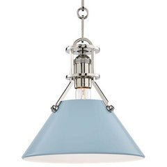 A charming modern mainstay with timeless appeal. The Painted Cone Pendant Light is designed by Mark D. Sikes for Hudson Valley Lighting and features a classic conical shade. Metallic details in the hardware and backplate lend a contemporary update to this endearing fixture, boosting the retro-inspiration of this piece. Suitable for any room in the house, it looks incredible mounted...