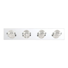 Eurofase Lighting Ryder 4 Light 26" Wide LED Bathroom Vanity Light In Chrome Features 4 x 5W/LED 3000K/1000lm (dimmable) Rated for damp locations Constructed from metal Comes with clear patterned/etched glass shades Integrated 5 watt LED lighting Dimmable with compatible dimmers ETL and CSA rated for damp locations Meets California Title 24 energy standards ADA compliant Covered under a 1...
