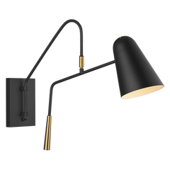 Width: 5.375"Height: 17.25"Backplate: DP:1" W:4.875" H:6.875" OB UP:11.125" RectangularSocket: 1 - Medium - A19Shade Details: Steel Midnight BlackAccent Details: Steel Burnished Brass **PLEASE note this product does not include shipping, please call 949-831-7600 for an accurate freight quote** Open Box
