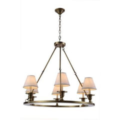 Elegant Lighting 1402D32BB Chester 6 Light Pendant In Burnished Brass The circle and the triangle marry to form the body of the Chester. Rich candelabra light covered by paper shades complete the look. The Chester comes in burnished brass. Number of Bulbs : 6 Light Source : Incandescent Bulb Base : E12 Candelabra Voltage : 110-125 Bulb Max Wattage :...