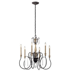 Kichler Kimblewick 6 Light Chandelier Weathered Zinc 43617WZC Kimblewick 6 Light Chandelier is inspired by the French country style and farmhouse simplicity. Throughout the entire Chandelier different textures are used, including a Weathered Zinc metal framework and a distressed Antique White center column. But the true showstoppers are the parchment glass teardrops: they feature the translucency of glass with the...
