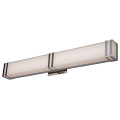 Product Details Product Color: CHROME Product Material: METAL Shade / Accent Color: FROSTED Shade / Accent Material: ACRYLIC Width: 20.25" Height: 5.25" Overall Height: 5.25" Ext: 4" Weight: 3lbs Light Source Details Light Source Type: INTEGRATED LED Input Voltage: 120V Bulb Voltage: 120V Wattage: 8W Total Wattage: 24W Delivered Lumens: 1050lm Kelvin: 3000K CRI: 90+ Dimmable: Yes **PLEASE note this...